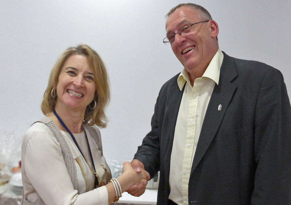Eleni Marianou, general secretary of CPMR’s Islands Commssion, shakes hand with Bertil Klintbom, Head of International Affairs at Region Gotland.
