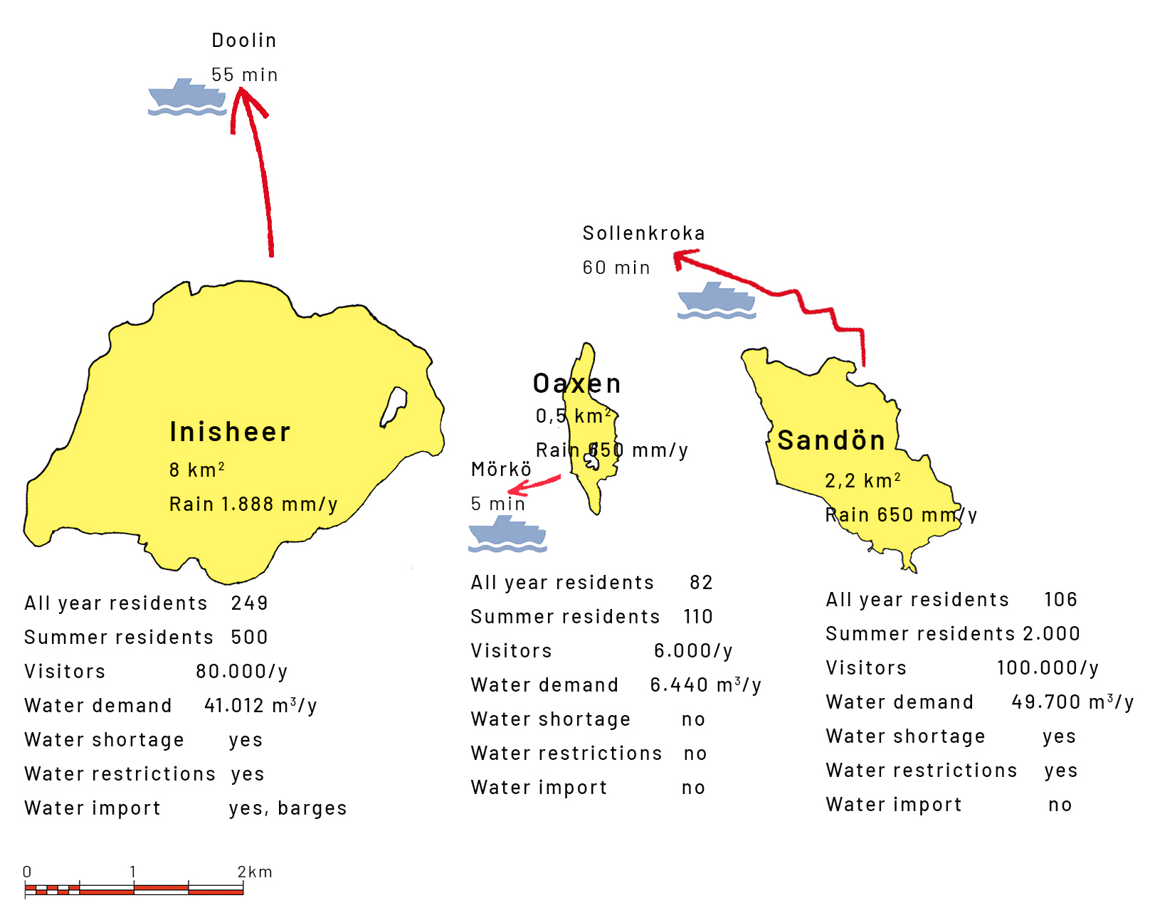 The inspiration came from the Irish island of Inisheer, one of the Aran Islands, where 25 households being the island’s largest water consumers got new shower heads, taps and toilets in 2017. The typical Irish family with 2.6 people reduced their water use from 128 to 79 litres per person and day. Inisheer thus saved 2.3 million litres of water in two years, which is necessary because it is a water-poor island forced to import fresh water by barges.